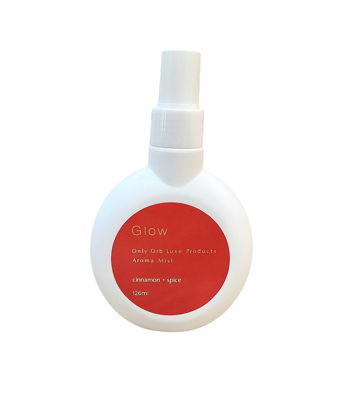 Glow (red) Embrace the warmth of the season with Glow, a festive blend that wraps your space in the comforting embrace of Christmas. Rich notes of cinnamon and spice mingle to create an inviting aroma that feels like a crackling fire and cherished holiday gatherings. Crafted to uplift and refresh, this natural aroma mist can be used to scent your home, linens, or personal space with a simple spritz. Whether misted through the air or over soft furnishings, Glow transforms any moment into a celebration of warmth, joy, and togetherness. ✨ Key notes: Cinnamon • Spice🎄 Perfect for: Holiday entertaining, cozy nights in, gifting Top Notes: Lemon Zest NutmegMiddle Notes: Cinnamon ButtercreamBase Notes: Vanilla Bean Malt. PRODUCT DETAILaroma mist for rooms + linensbottle size 14 x 9 x 3 cmbottle weight 165g Sophisticated scents, classic shapes and clean lines is what you can expect from Only Orb's range. The Aroma Mist line features luscious and evocative blends for your indoor environment, soft furnishings and linens in a variety of stylish colours and fragrances.